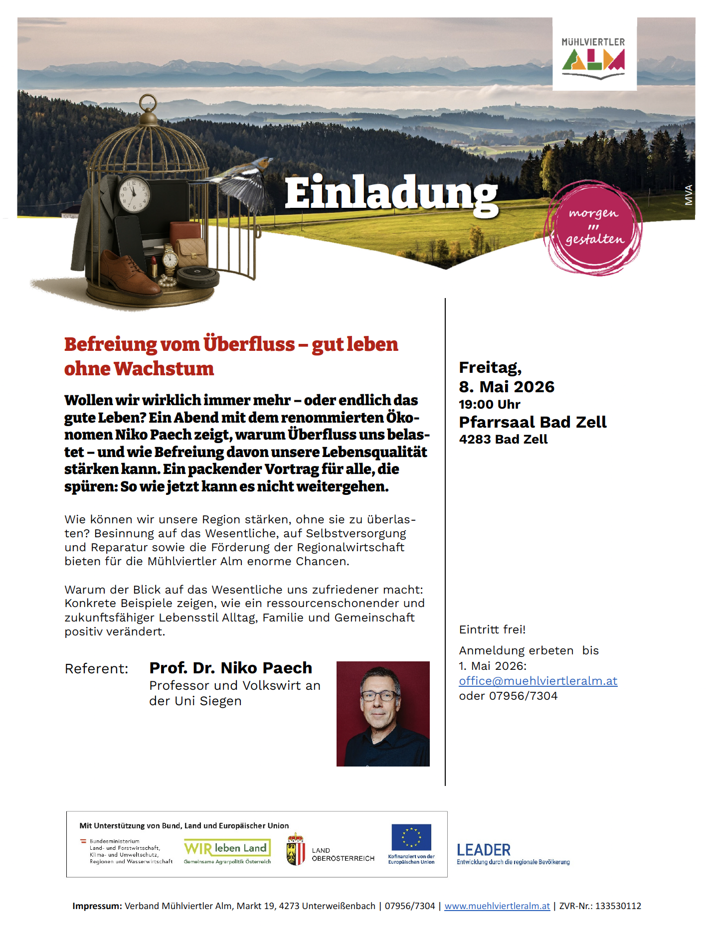 Interessanter Vortrag der Mühlviertler Alm in Bad Zell! 8. Mai 2026 19:00 Pfarrsaal Bad Zell Mehr erfahren…